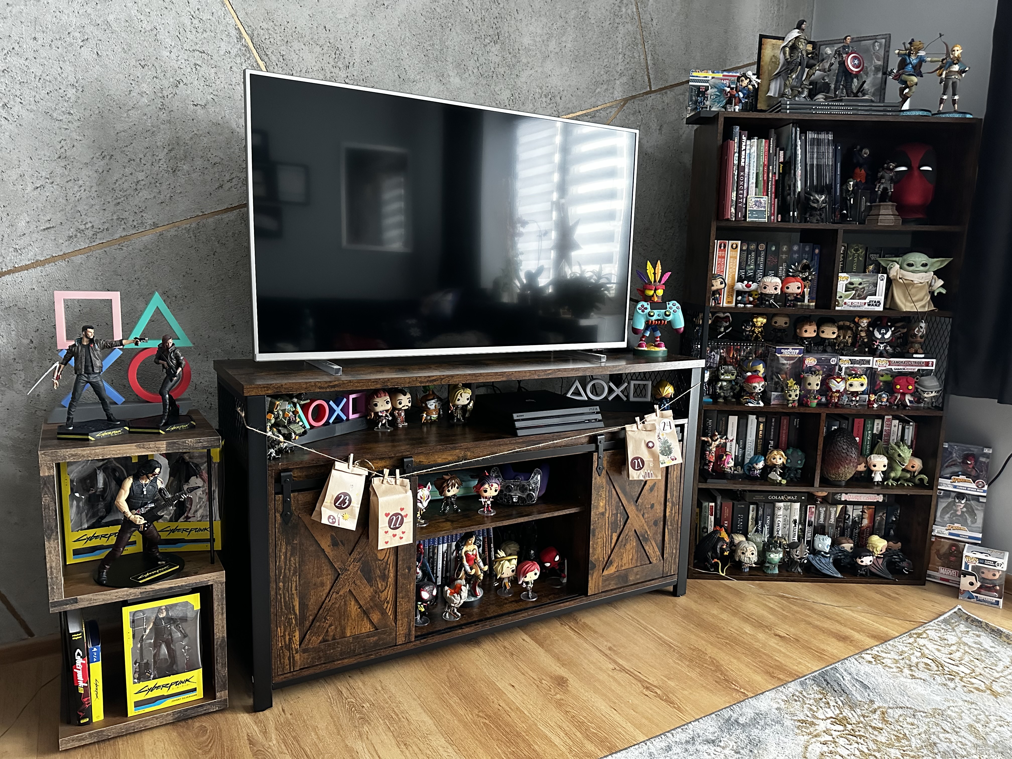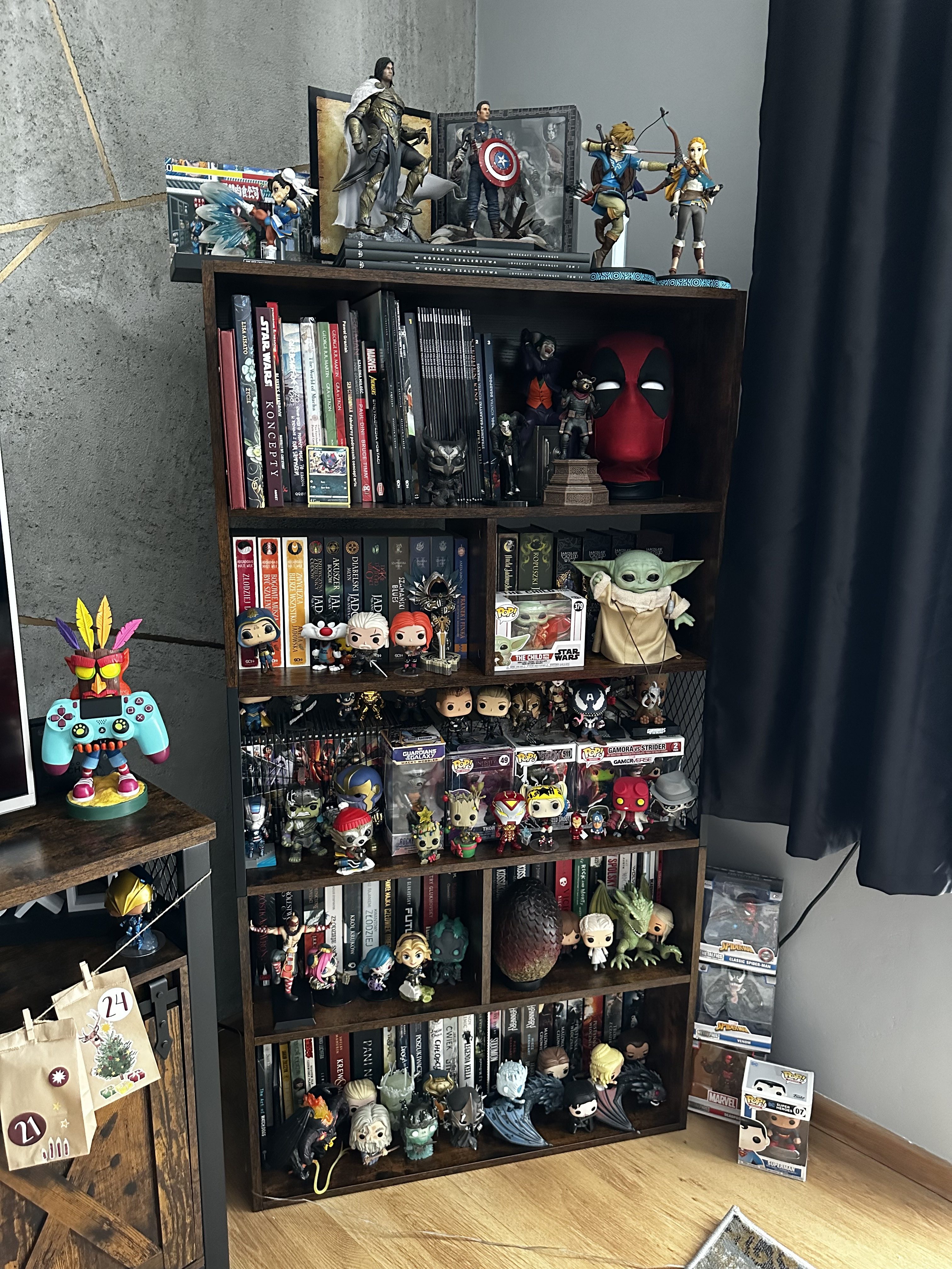 KA: W moim przypadku chyba jest to całokształt wyglądu mojej kolekcji i to, że te przedmioty obrazują mnie i mój charakter. Ale jeśli miałabym wymienić konkretne rzeczy, na pewno byłaby to kolekcja figurek z gry Cyberpunk. Mam już skompletowane prawie wszystkie, które wyszły i są możliwe do zdobycia na rynku. Jako kolejne mogę wymienić sporą ilość figurek Funko POP ze świata Gry o Tron czy Uniwersum Marvela. Na pewno jednym z bardziej zabawnych przedmiotów, jaki mam w swojej kolekcji to gadająca głowa Deadpoola. Dzięki aplikacji, którą możemy pobrać na telefon, możemy schować ją na przykład do lodówki i gdy ktoś otworzy drzwi lodówki, głowa zaczyna gadać i ruszać się jak żywa.
