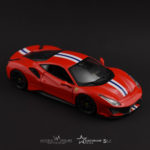 Ferrari 488 Pista. Model w skali 1:24, firmy Bburago, przedstawia pięknie odwzorowaną wersję samochodu Ferrari.