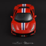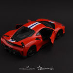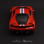 Jak widać na zdjęciach, model występuje w klasycznym dla włoskiej marki czerwonym kolorze. Dodatkiem w wersji Pista jest biało-niebieski pasek, przechodzący przez środek samochodu, który z pewnością dodaje smaczku modelowi. Model posiada otwierane drzwi, niestety w tym egzemplarzu nie mamy otwieranych klap zarówno bagażnika jak i maski, podobnie jak w Lamborghini Terzo. Bardzo duże wrażenie robią dopracowane logotypy, świetnie prezentują się także czarne felgi. Model w skali 1:24 robi naprawdę bardzo dobre wrażenie. Podsumowując, model ten jest wielką gratką dla fanatyków marki.