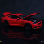 Widoczny na zdjęciach model to Ford Mustang z 2015 roku posiada otwierane drzwi, bagażnik oraz maskę. Pomalowany pięknym czerwonym lakierem. Model wygląda naprawdę dobrze. Co prawda firma Maisto nie jest postrzegana jako potentat w branży modelarskiej, ale jak na tak niewielką cenę nie możemy narzekać. Mowa tutaj o około 180 zł, bo za tyle można nabyć powyższy model. Logotypy Forda są ładnie odwzorowane, dobrze wykonane są także felgi oraz drzwi. Wszystko sprawnie się otwiera i zamyka