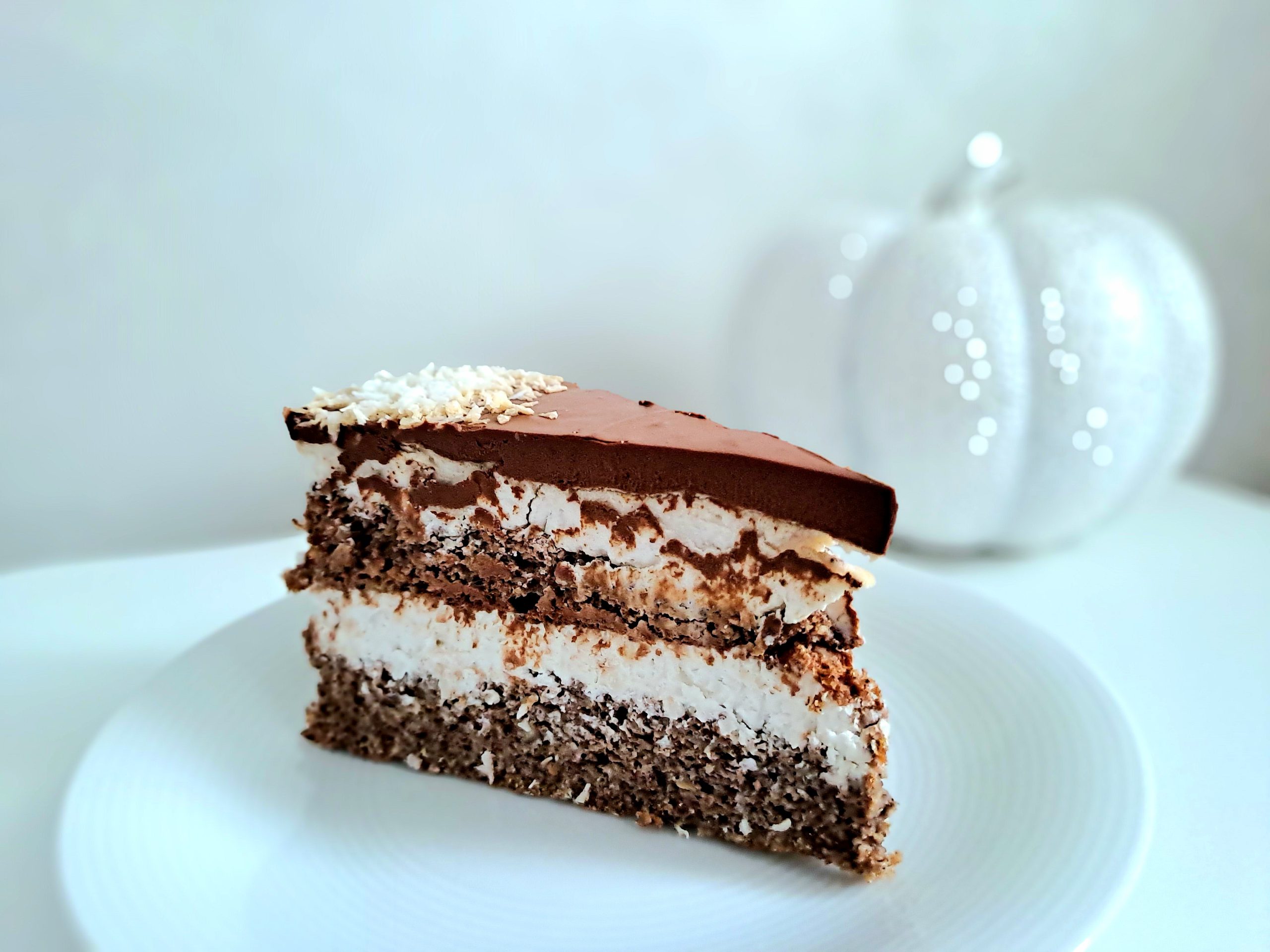 Warstwowy torcik inspirowany popularnym batonikiem Bounty to eksplozja kokosowo-czekoladowych smaków. Soczysty kakaowy biszkopt przeplata się z puszystym, kokosowym kremem, a całość wieńczy gruba warstwa aksamitnej, gorzkiej polewy czekoladowej. Intensywny, słodki, a zarazem zbalansowany deser – szczególnie dla fanów kokosa.