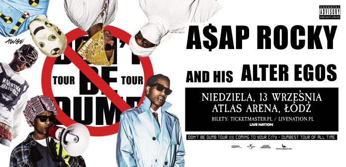 Wszechstronny artysta, przedsiębiorca, aktor i ikona mody A$AP Rocky ogłasza swoją trasę koncertową na 2026 rok – Don’t Be Dumb World Tour. Obejmująca 42 koncerty trasa, promowana przez Live Nation, będzie dla fanów pierwszą okazją, by usłyszeć na żywo album DON’T BE DUMB – pierwsze pełnowymiarowe wydawnictwo Rocky’ego od ośmiu lat.
