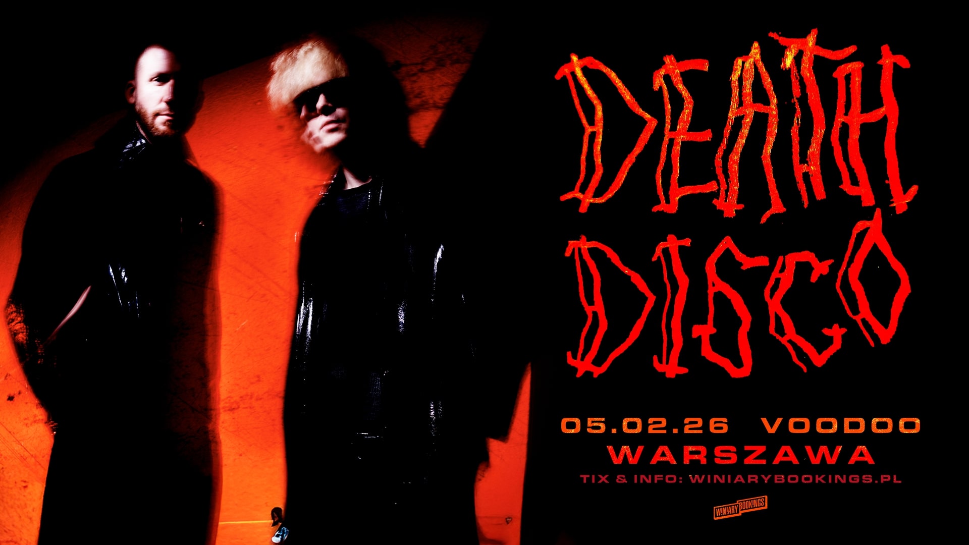 Death Disco łączą punkową surowość, industrialny ciężar i bezkompromisową elektronikę w sposób, którego intensywność bliska jest rytuałowi. Duet wystąpi już 5 lutego w warszawskim klubie VooDoo.