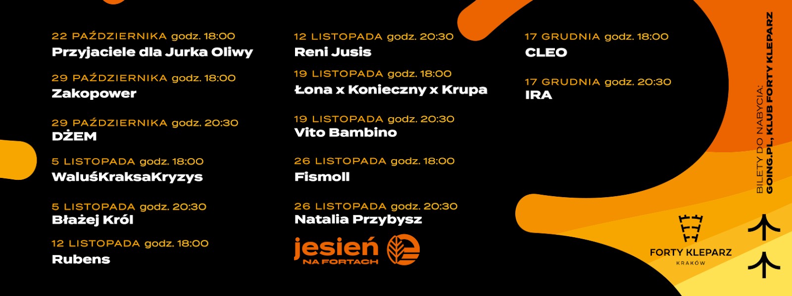 Tegoroczna Jesień na Fortach rozpocznie się w niedzielę 29 października. W krakowskim klubie Forty Kleparz zagra zespół Zakopower (godzina 18:00) oraz Dżem (godzina 20:00).